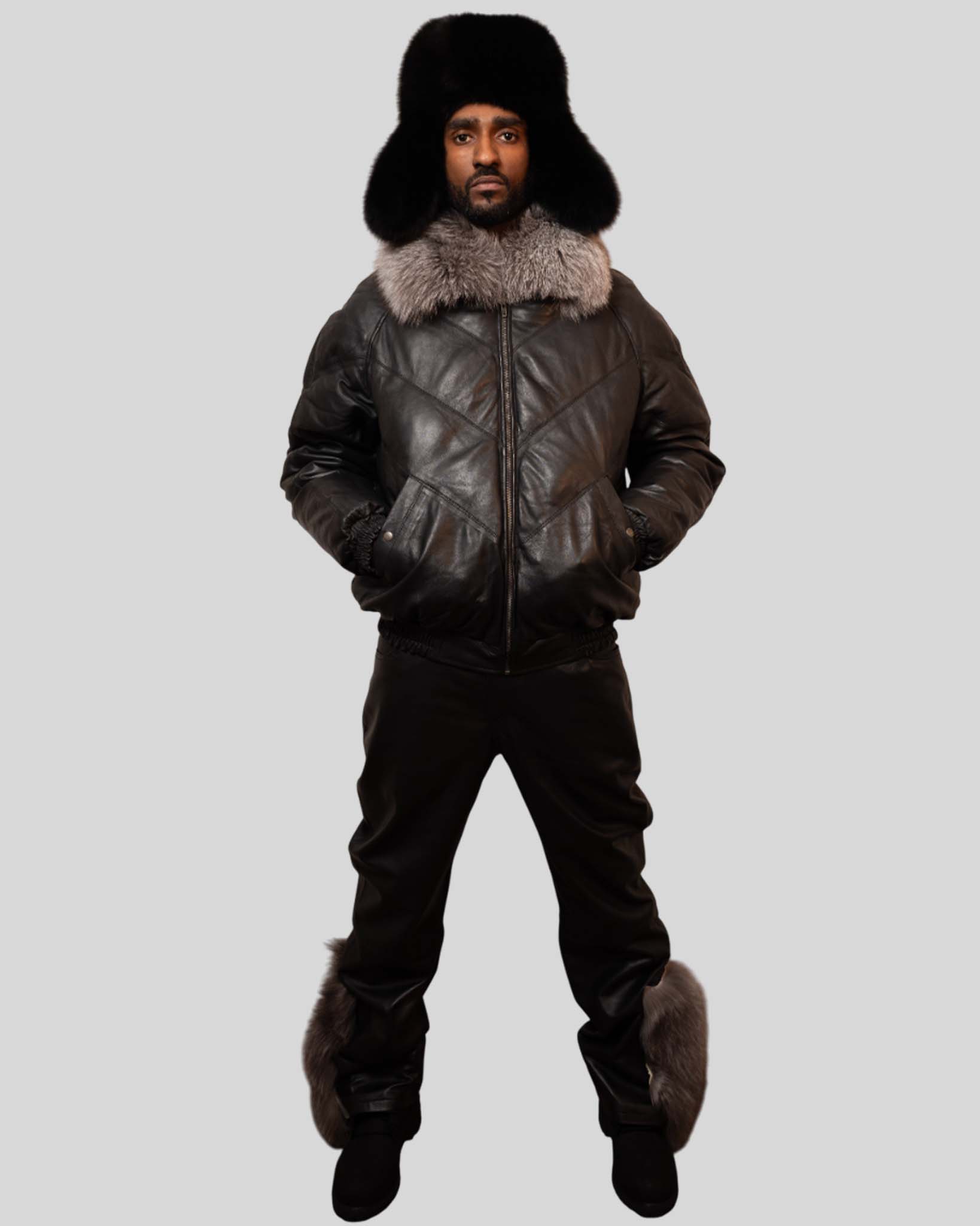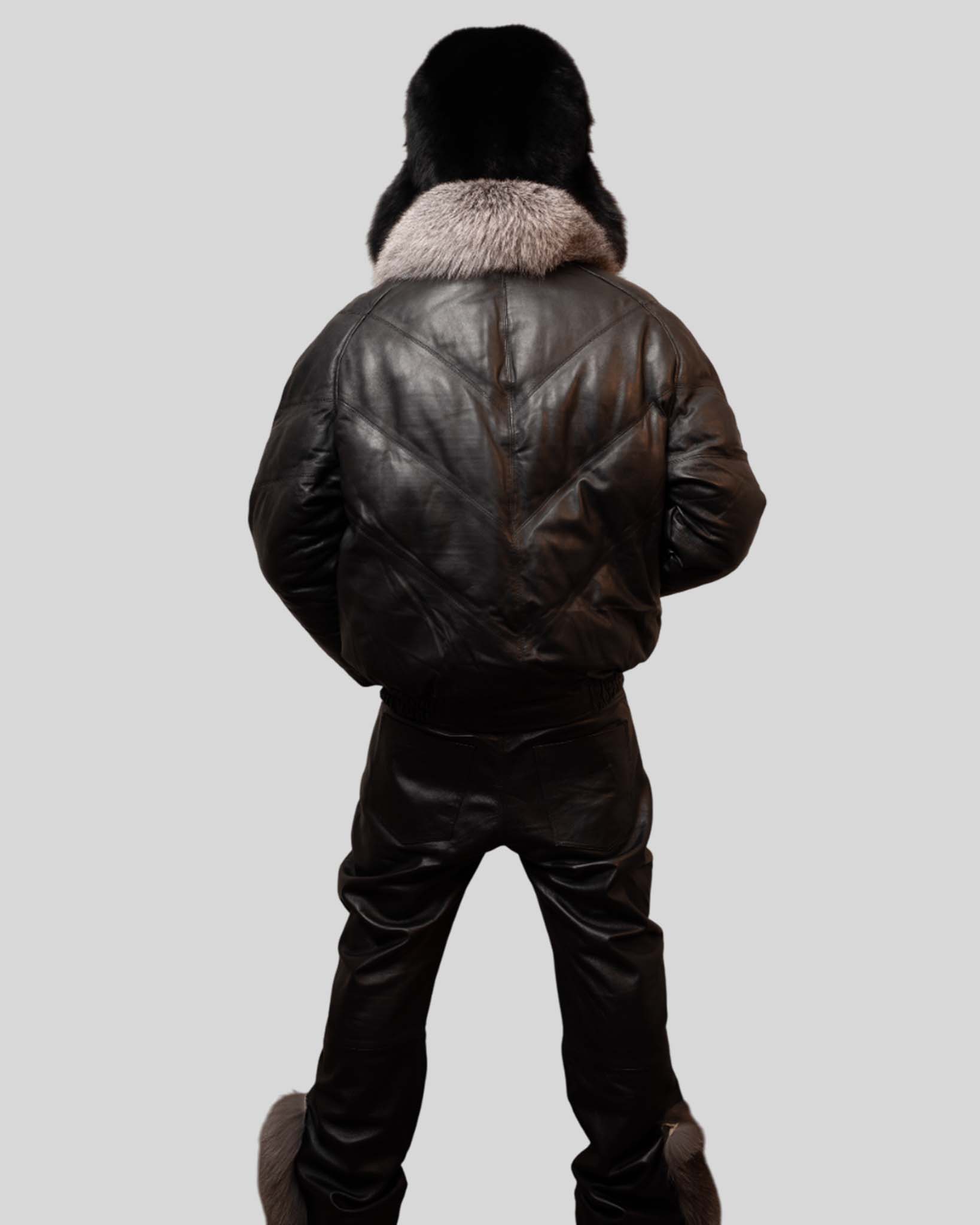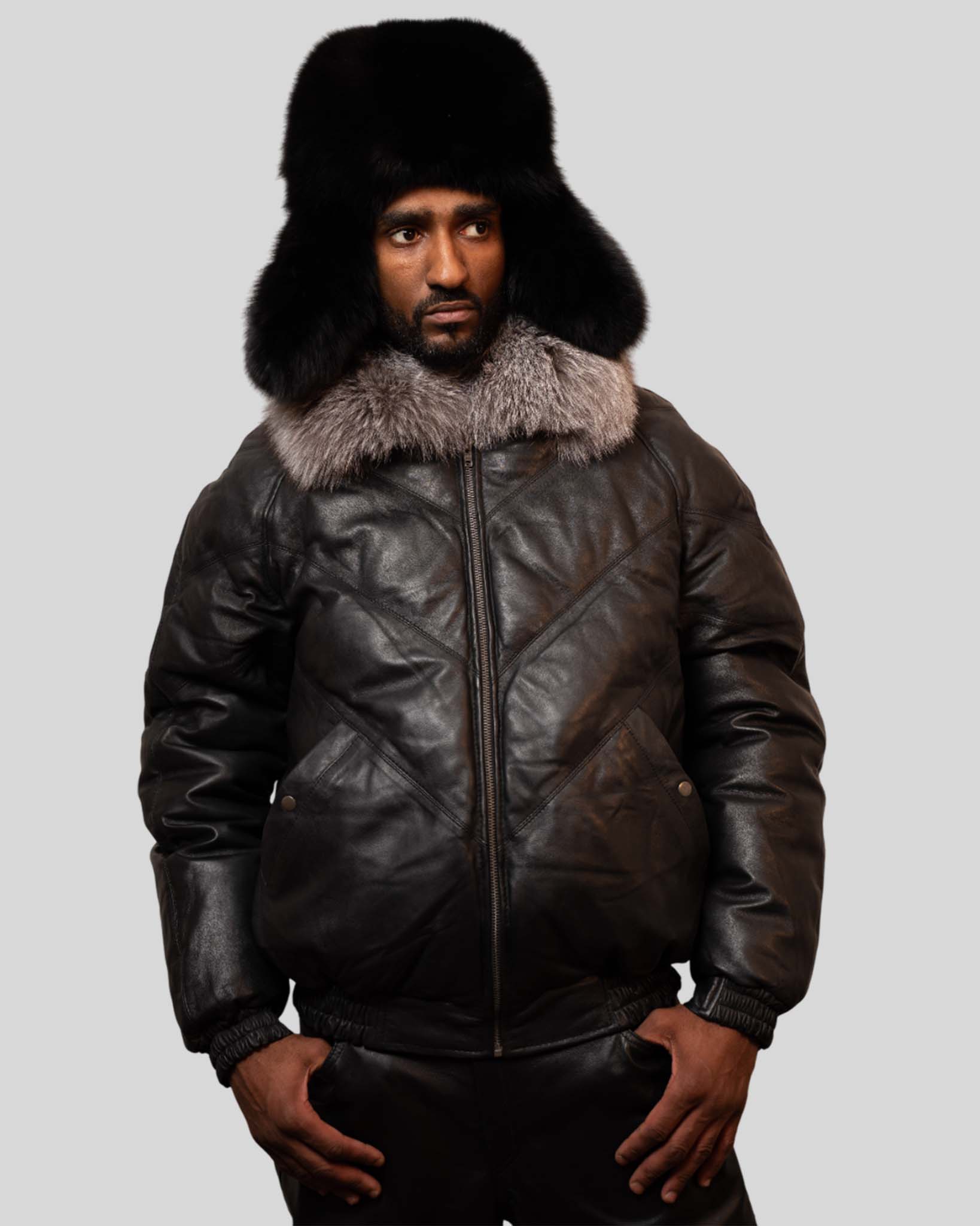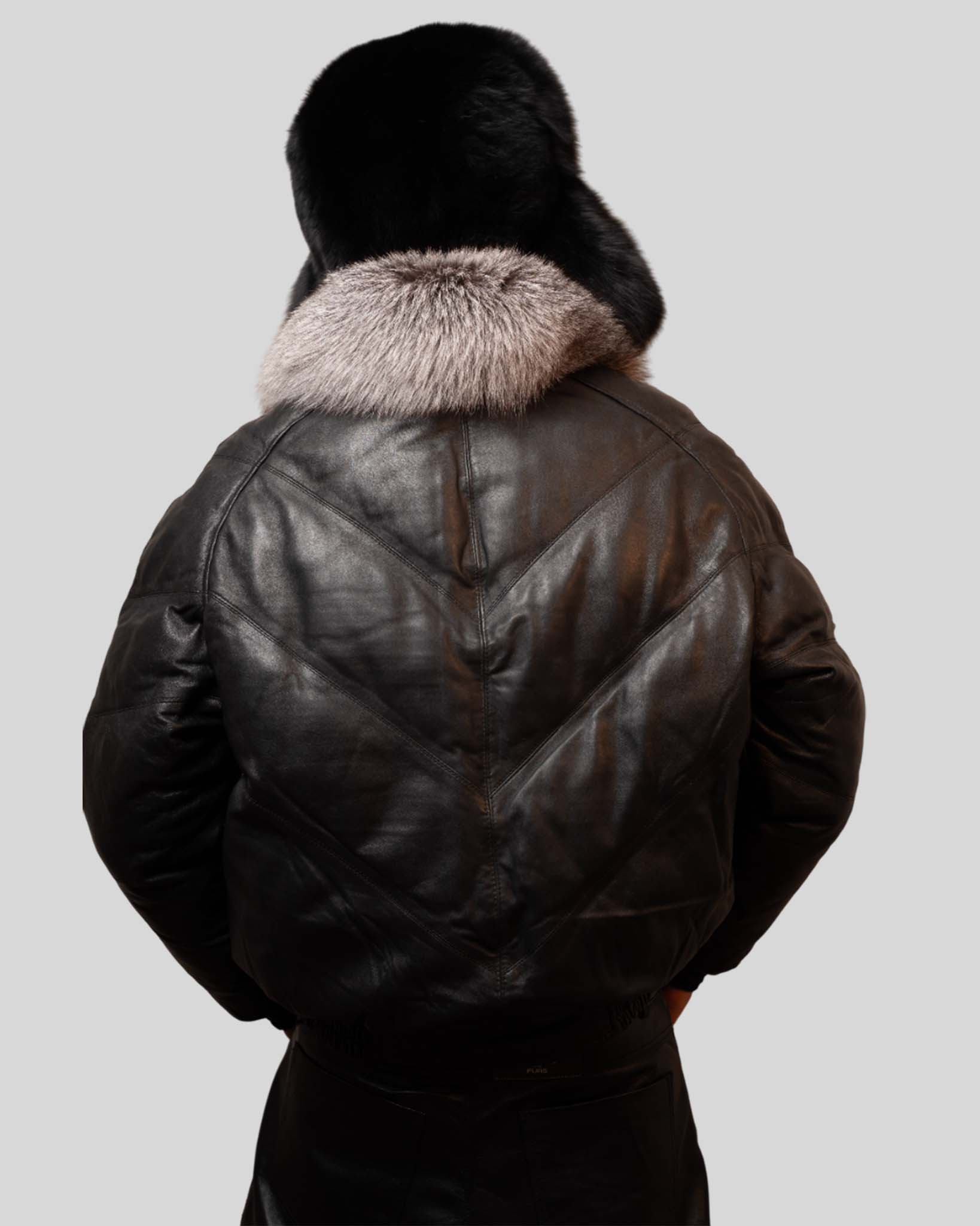 Be the first to review “Black V-bomber with Fox fur detachable collar”