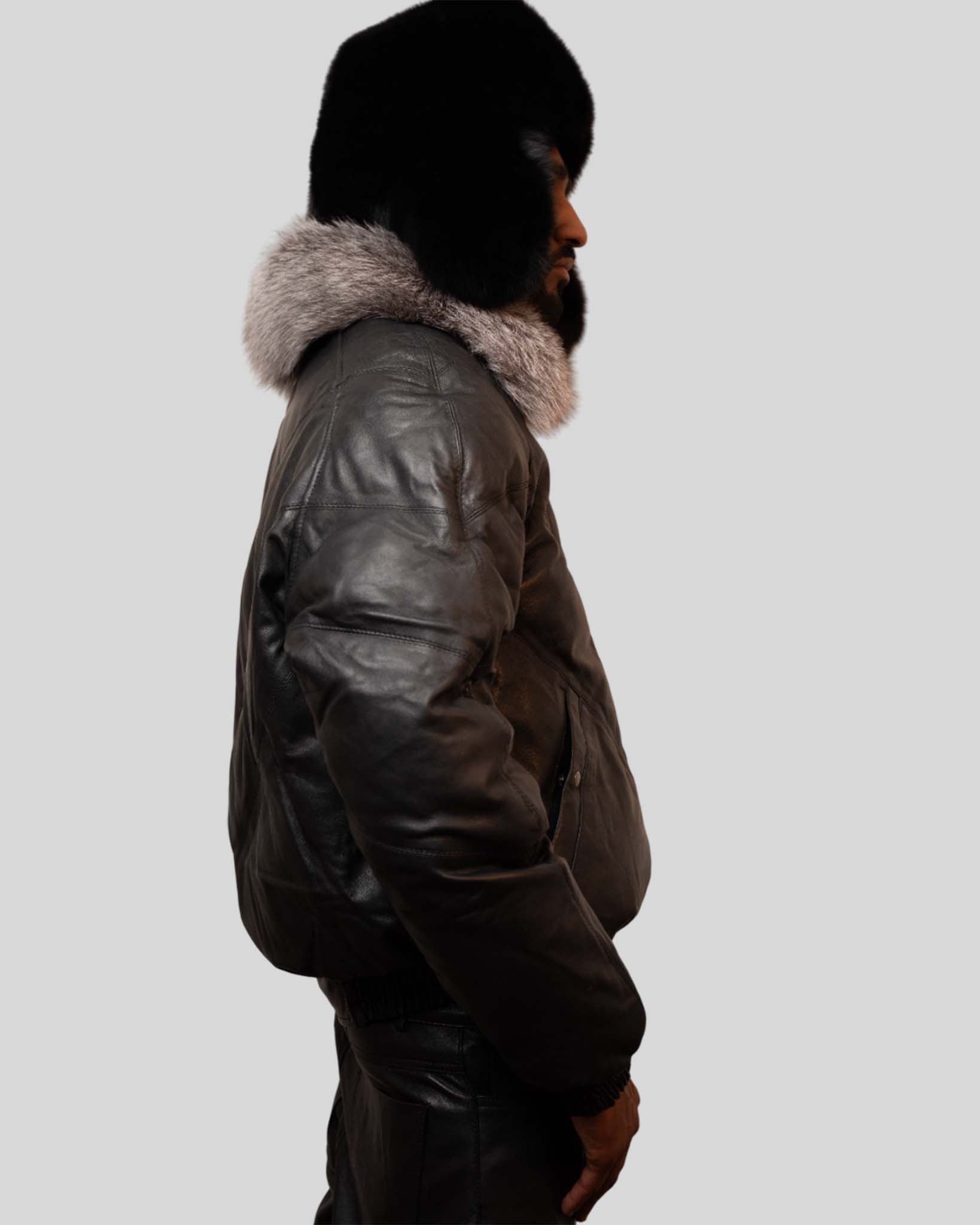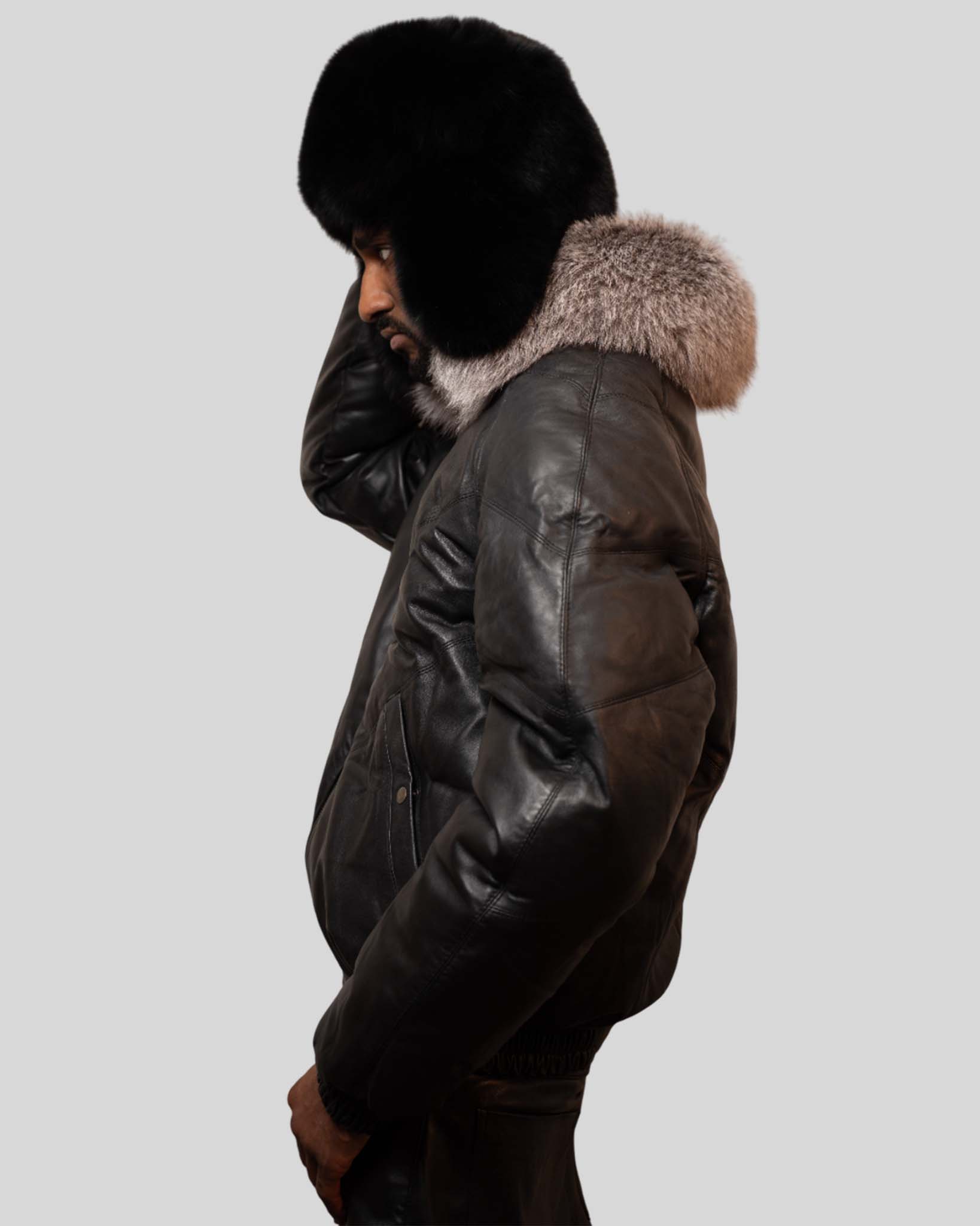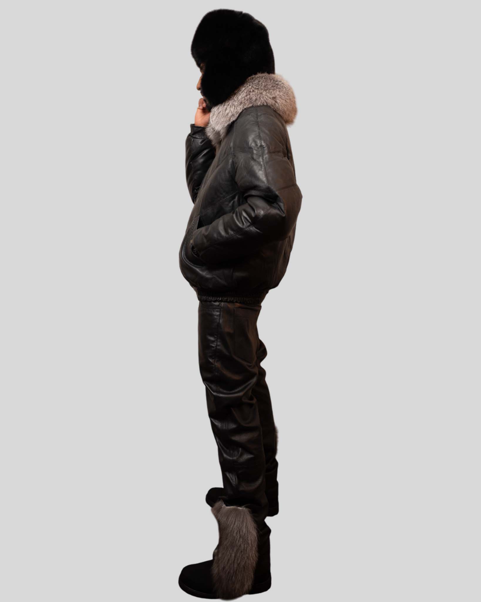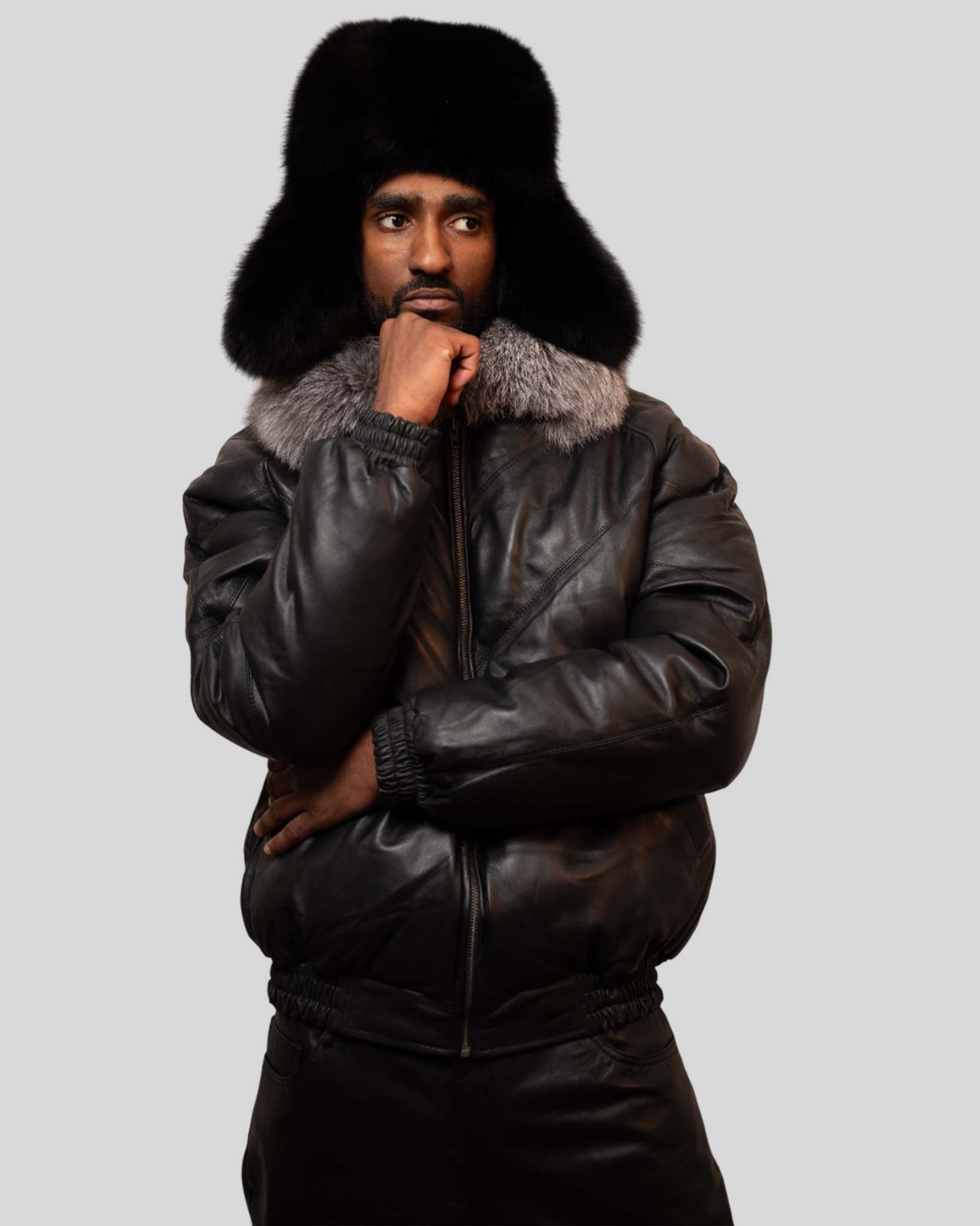 Be the first to review “Black V-bomber with Fox fur detachable collar”