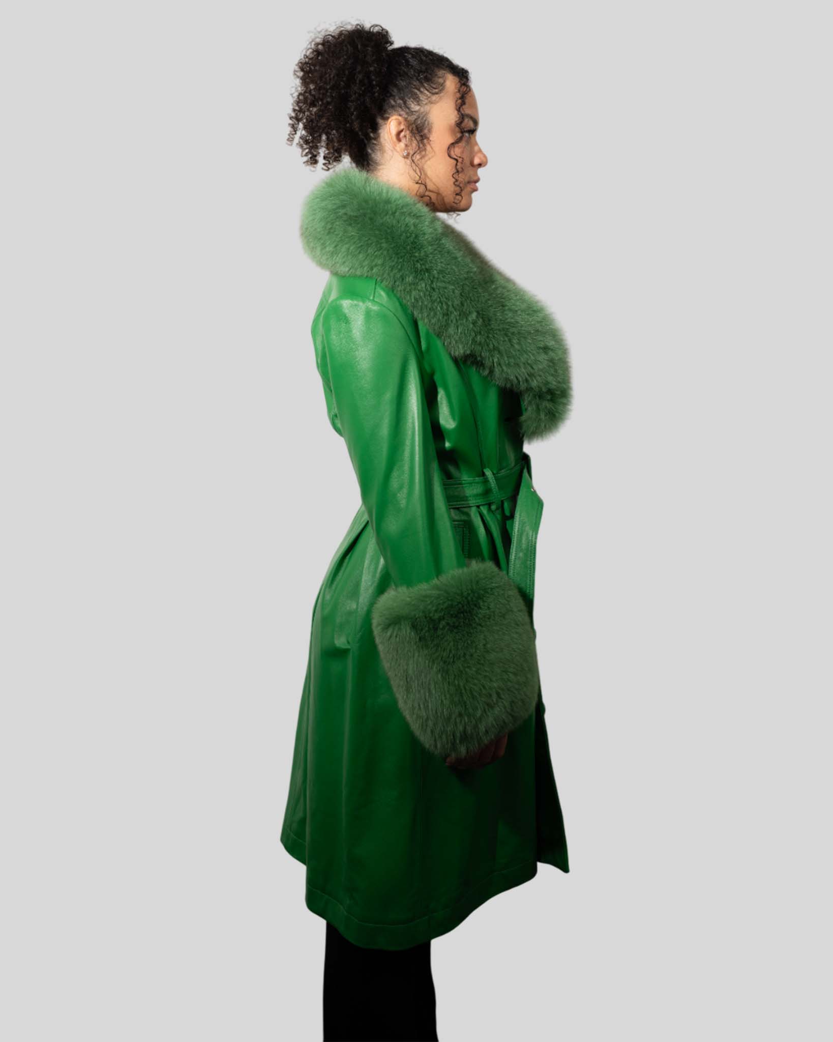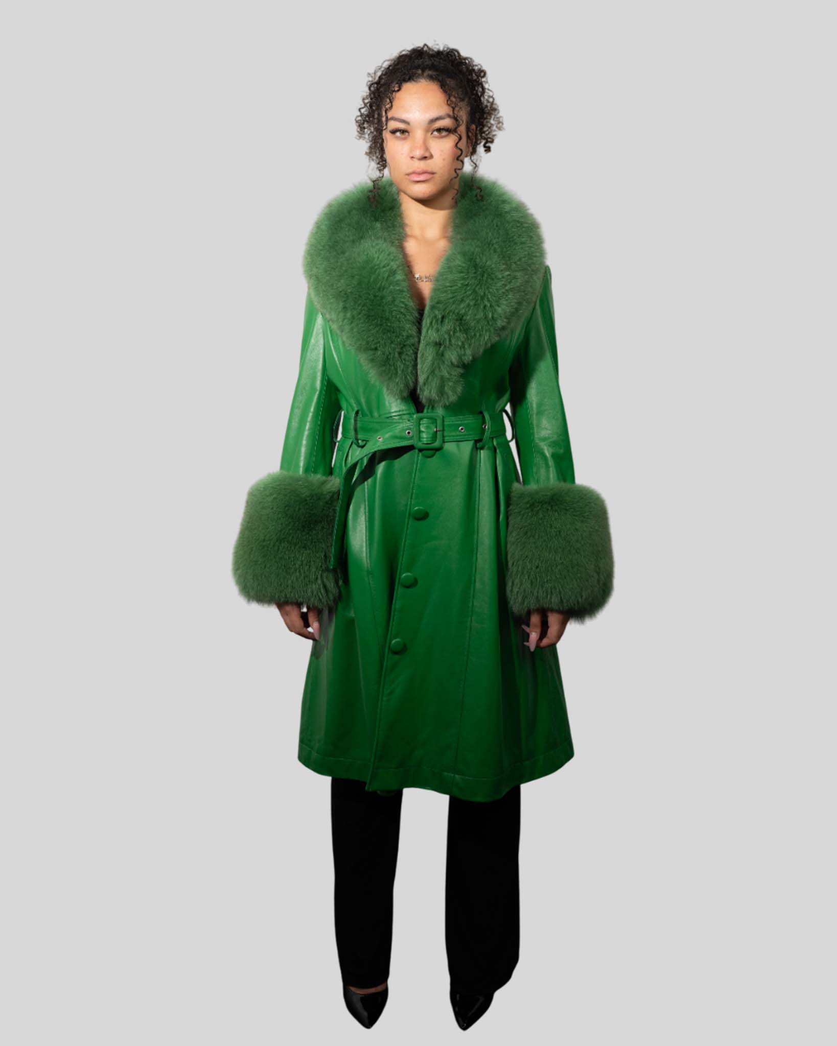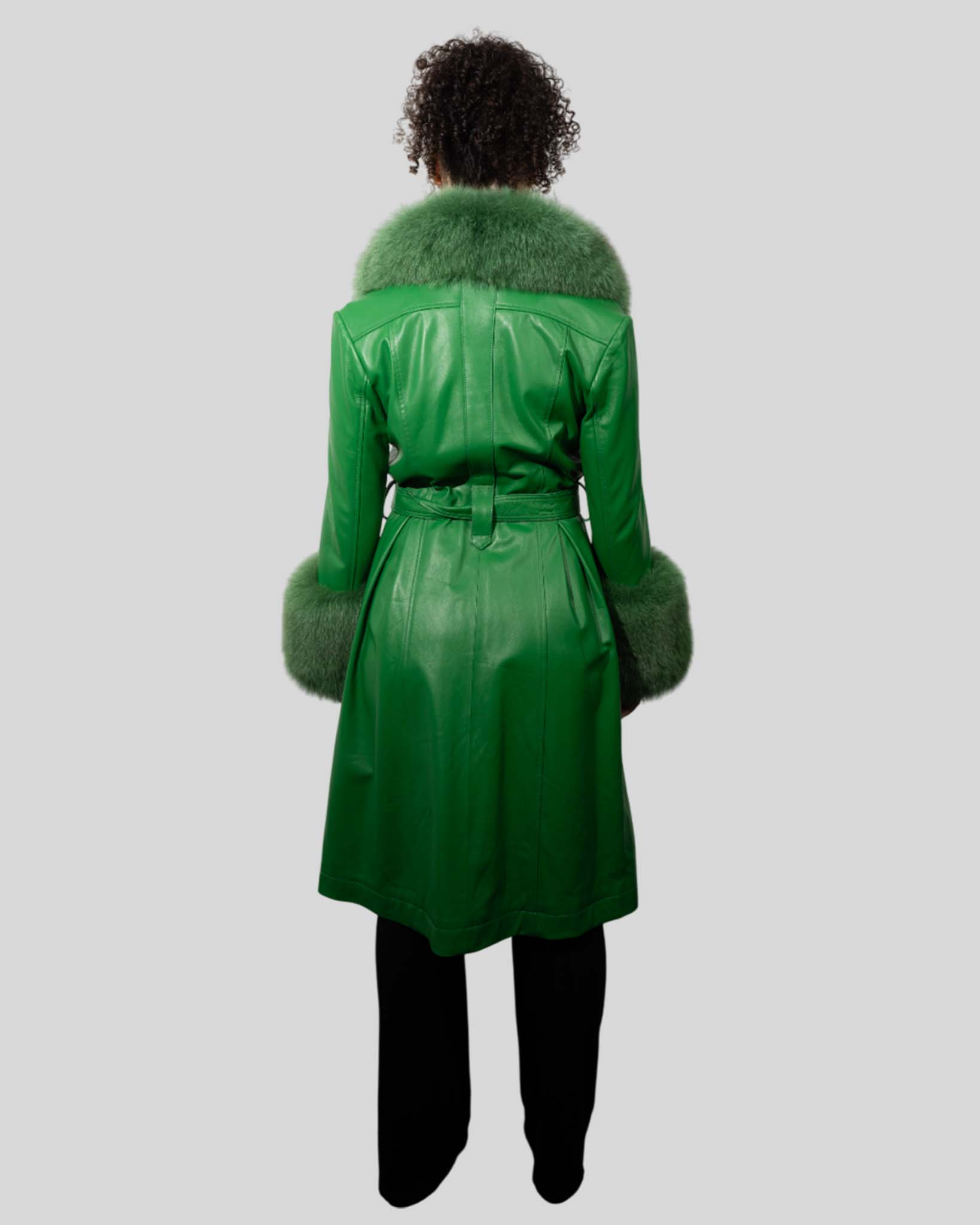Women’s Luxury Green Fur Leather Coat – Statement Outerwear Blends genuine leather with plush fur for bold, upscale winter fashion. Key Features Genuine leather Premium fur trim Belted style Luxury warmth